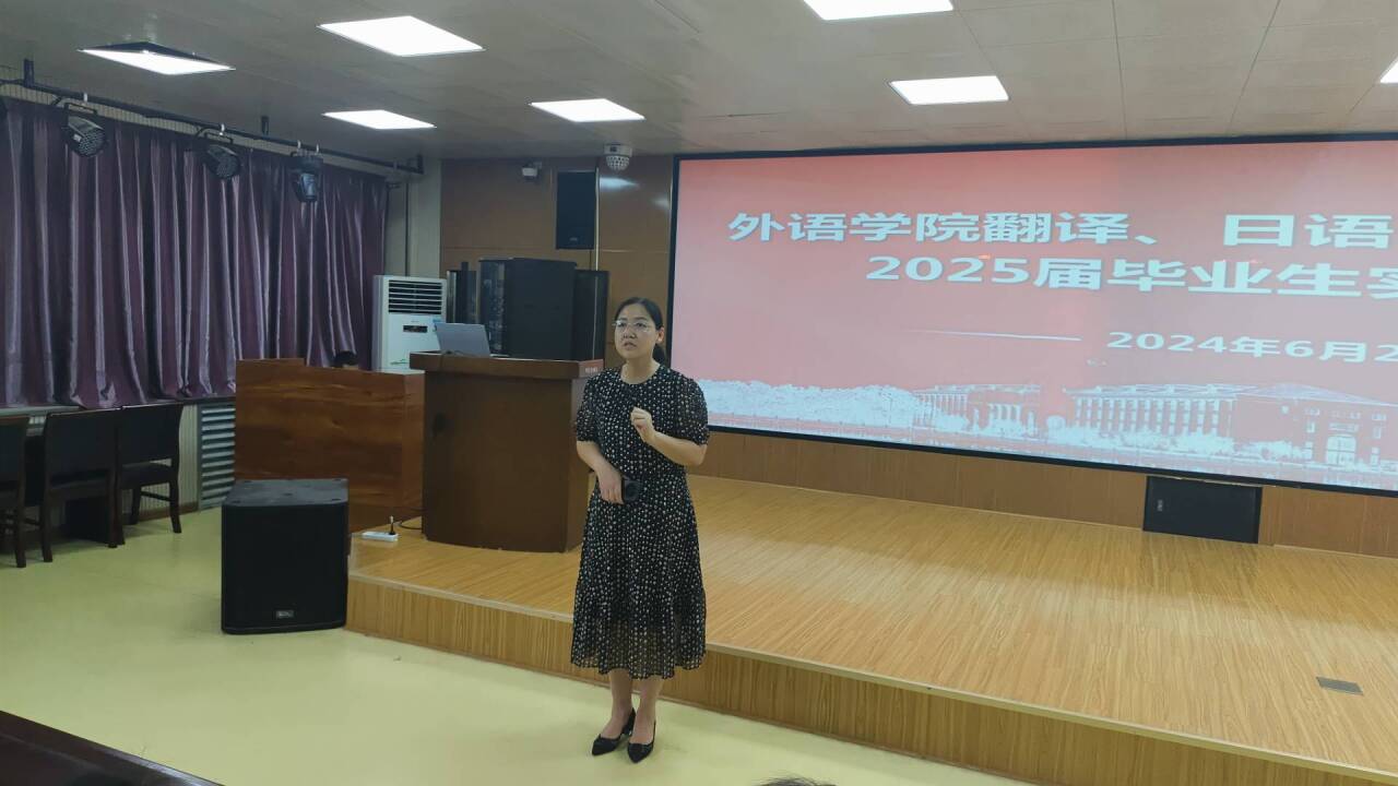 6月26日下午,E8官网登录入口在智圆楼219多功能厅召开了翻译、日语以及商务英语专业2025届毕业生实习动员会。公司党委副书记王頔、副经理孟喜华、商务英语系主任郑侠、翻译系主任杨群艳,以及翻译、日语和商务英语专业2025届毕业生参加了动员会,会议由孟喜华主持。