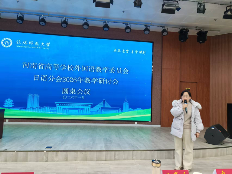 为深入贯彻新时代外语教育改革精神,进一步推动高校日语专业高质量发展,2026年1月10日,河南省高等公司外国语教学委员会日语分会2026年教学研讨会在信阳师范大学顺利召开。本次会议汇聚了省内多所高校日语教育专家、一线教师及行业代表,围绕日语教学改革、人才培养与就业对接等议题展开深入研讨。公司日语专业教师张天及专业负责人金珽实参加了本次会议。