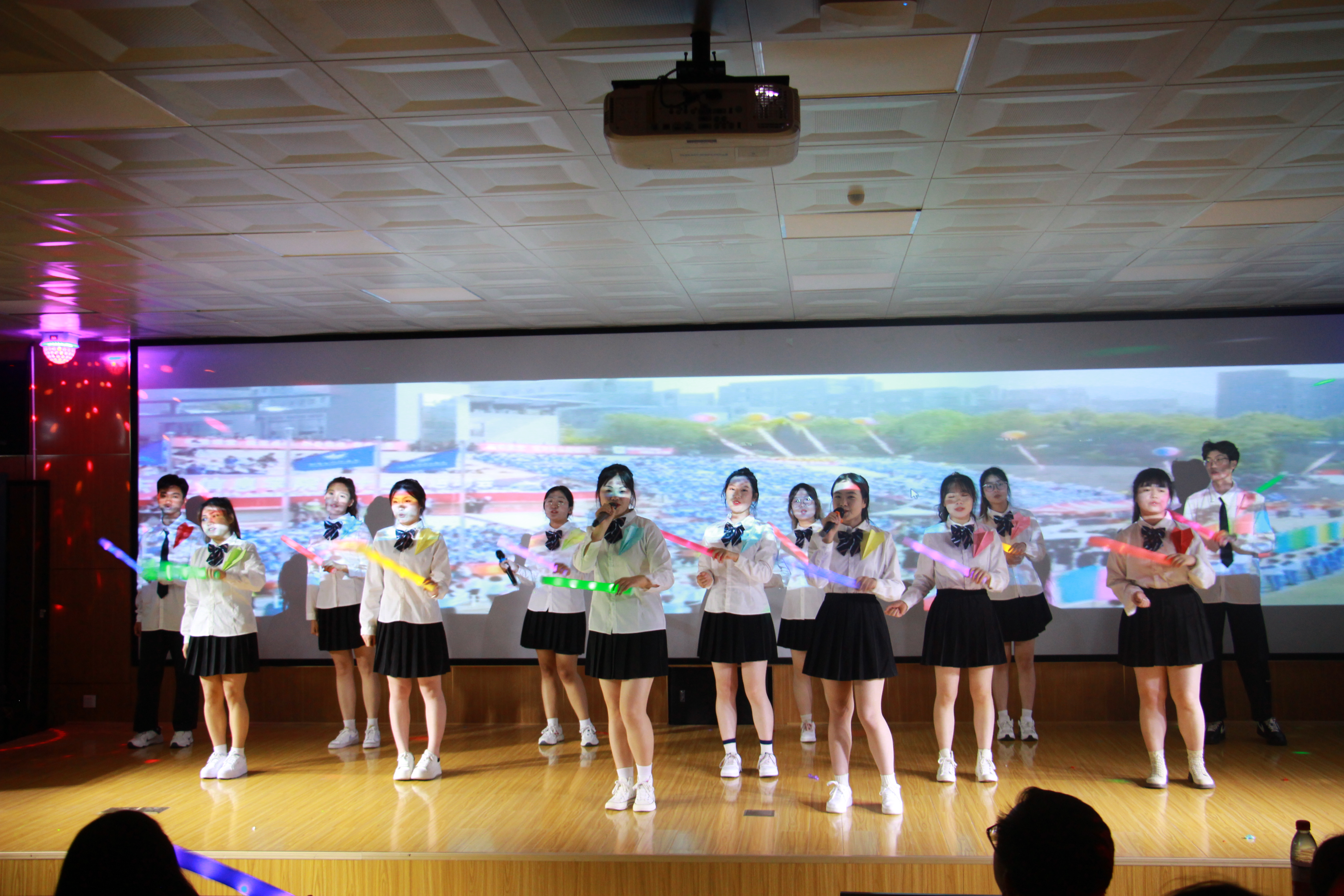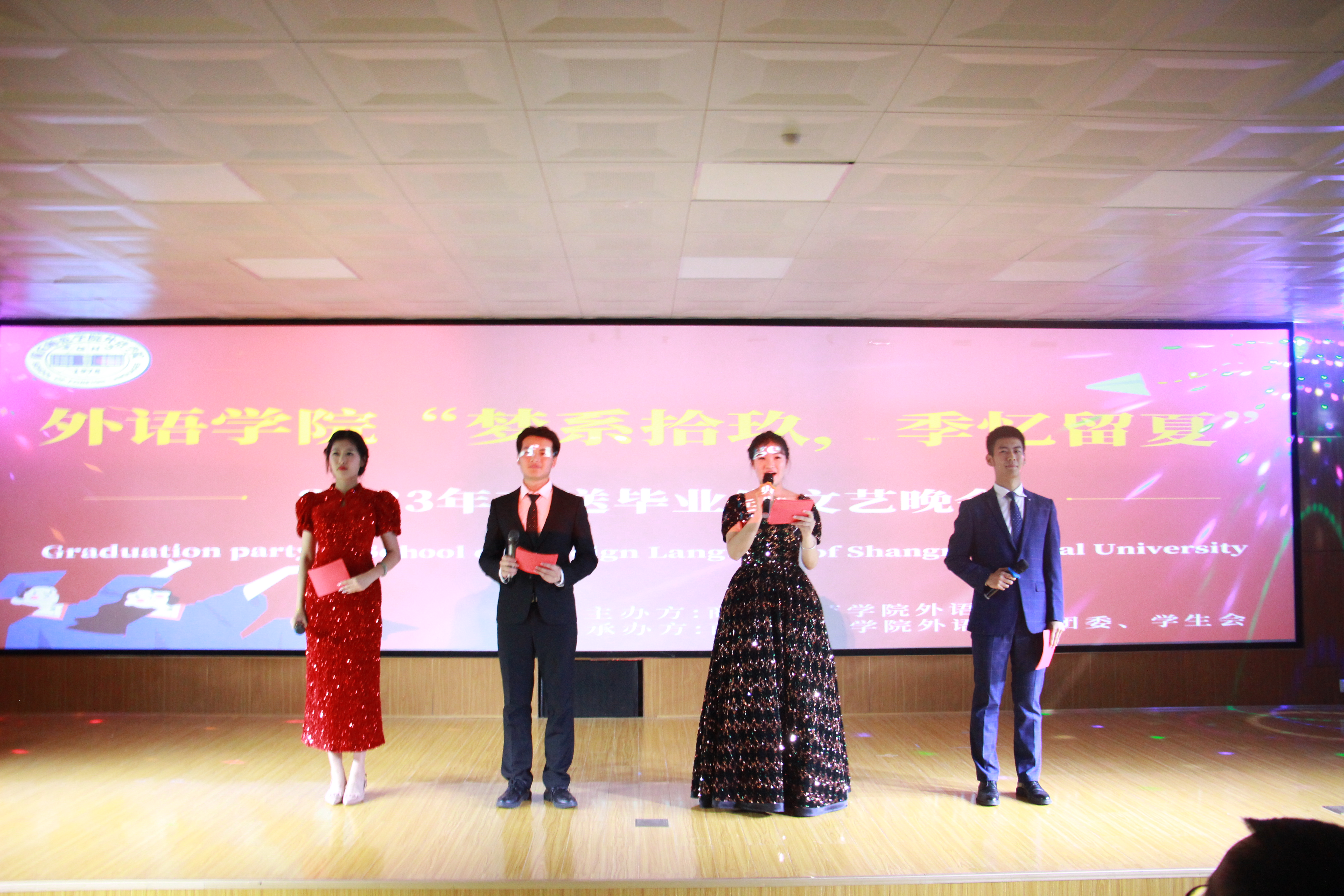 接着,英、日、韩等多语种节目精彩纷呈,令人耳目一新,既紧密结合外语学科专业特点,又充分展示了外院学子积极向上、昂扬进取,奔赴人生新征程的精神风貌。歌曲《无尽的爱》《Love Story》《Bye Bye Bye》等深深地唱出了毕业在即、分别将至,学子们与母校心相连、常想念的不舍情谊。英语小品《新白雪公主》、舞蹈《疯狂的被罩》,别样的表演,滑稽的动作,入胜的情节令人开怀大笑,使现场气氛热烈而放松。最后,合唱《后来》《再见》再次将晚会推向高潮,表达了毕业生们要离开熟悉的校园的不舍。梦想洋溢,奏响青春的美妙乐章;青春飞扬,演绎完美的幸福起航,本次晚会的成功举办必将为公司2023届毕业生们留下美好的回忆。