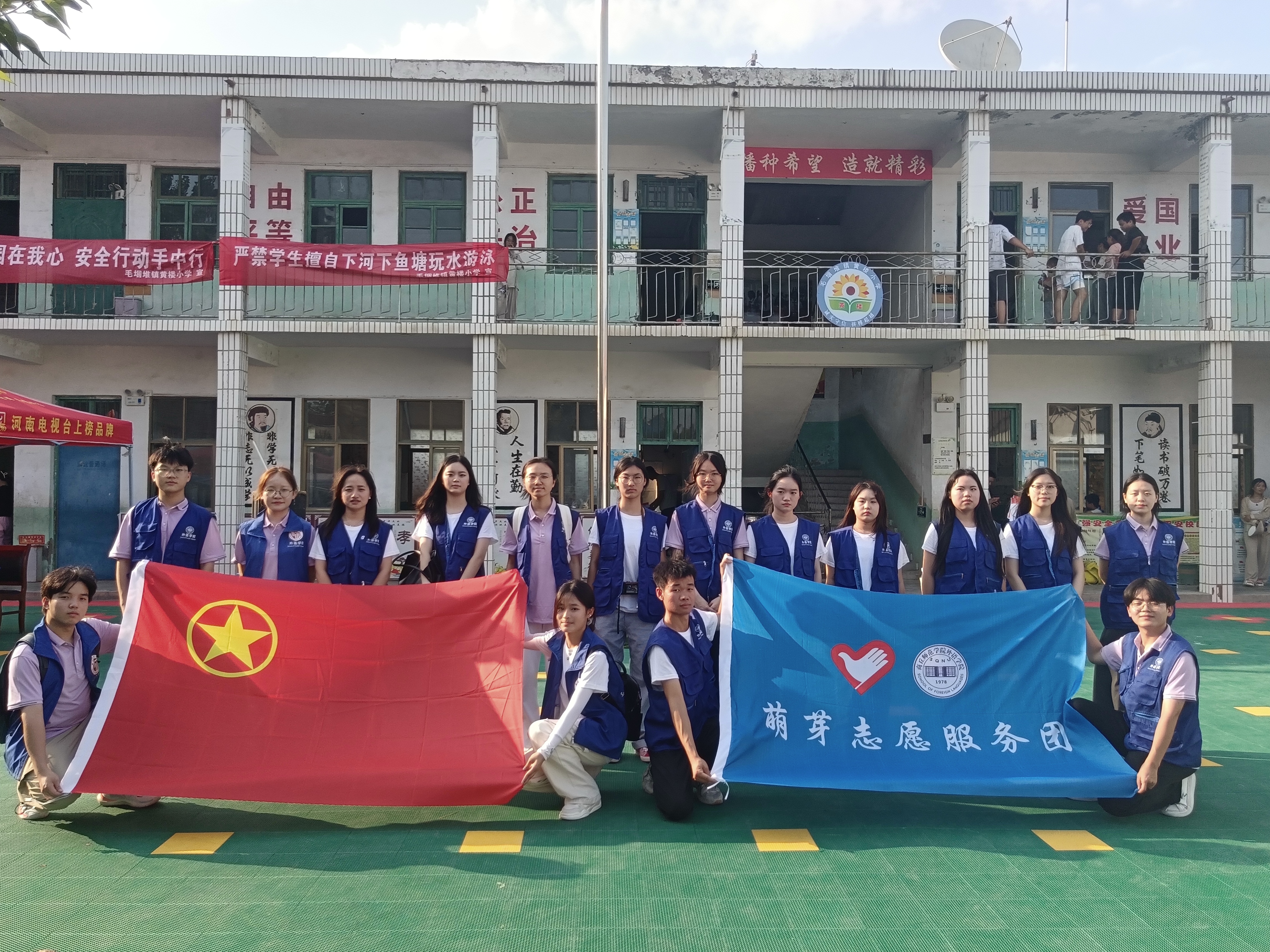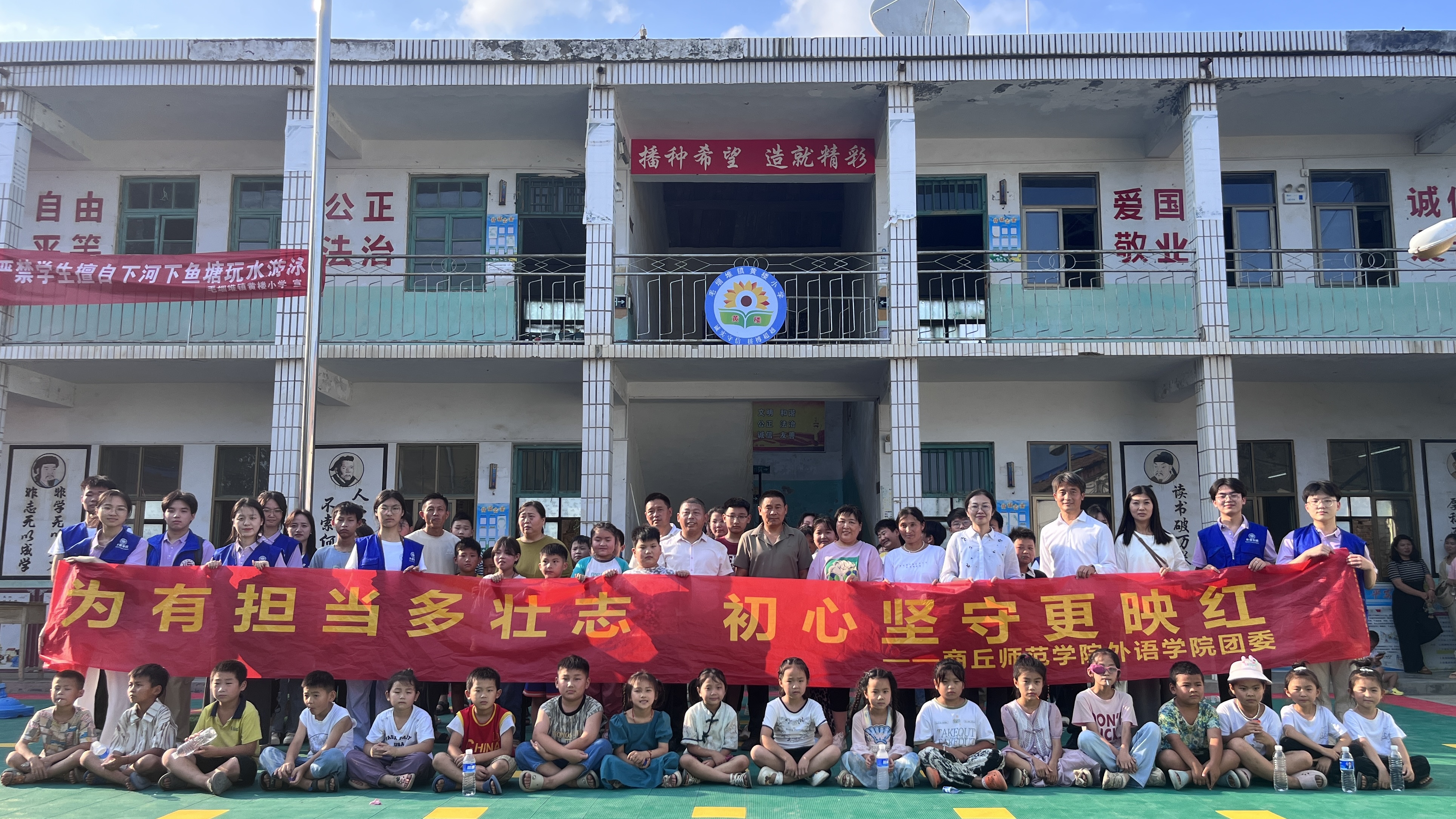 仪式结束后,“萌芽志愿服务团”的成员们为黄楼小学的员工们带来了精心准备的教学课程和丰富多彩的文体活动。生动有趣的外语课堂激发了孩子们对外语的浓厚学习兴趣;互动有趣的文体活动促进了孩子们的身心健康发展;青春与奋斗的主题宣讲,在孩子们心中播下了知识和力量的种子,激励并引领着祖国的花朵茁壮成长。