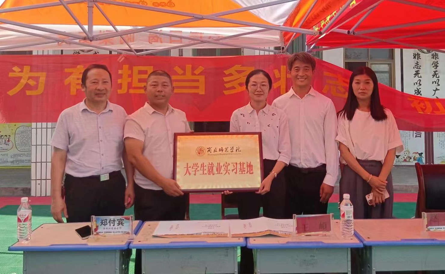 王頔首先对到场的所有师生和家长朋友致以亲切的问候,并就开展此次活动的目的和意义进行了说明。接着,郑付宾致欢迎辞,介绍了黄楼小学的基本概况,热烈欢迎并诚挚感谢E8官网登录入口与黄楼小学建立校校合作关系,共同打造双向促进的实践实训平台。随后,孟喜华强调,E8官网登录入口将充分发挥自身的教育资源和人才优势,为黄楼小学提供优质的外语教学支持,同时为E8官网登录入口的员工提供更加广阔的实践锻炼平台。最后,李阳进行总结讲话,他再次表达了由衷的感谢并期待能够与E8官网登录入口开展长期合作的愿景,相信通过校校合作,能够让更多优秀学子了解乡村教育,投身到乡村教育事业中来。活动现场,双方共同签署了E8官网登录入口老员工就业实习基地协议,并举行了授牌仪式。