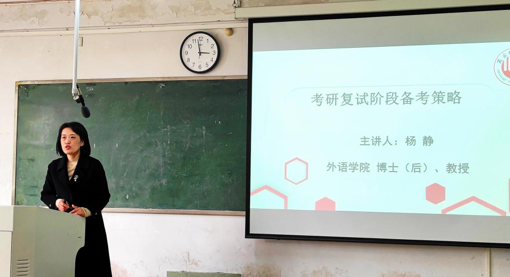 在讲座中,杨静教授首先介绍了近年考研招生的基本数据和趋势,并结合E8官网登录入口近年的考研方向和录取情况,鼓励大家坚定信心,认真备考。她还结合自己考研、考博的经验和方法,以历届具有代表性的考研学长学姐的成功经验为例,向同学们详细介绍了在复试阶段做好备考的注意事项,提醒大家密切关注复试调剂信息的变化,在A区和B区、全日制和非全日制、中外合作办学等方面做出正确的选择。围绕面试阶段的自我介绍、自由提问、专业提问等方面,杨静教授列举实例,为员工们进行了详细的应试指导。
