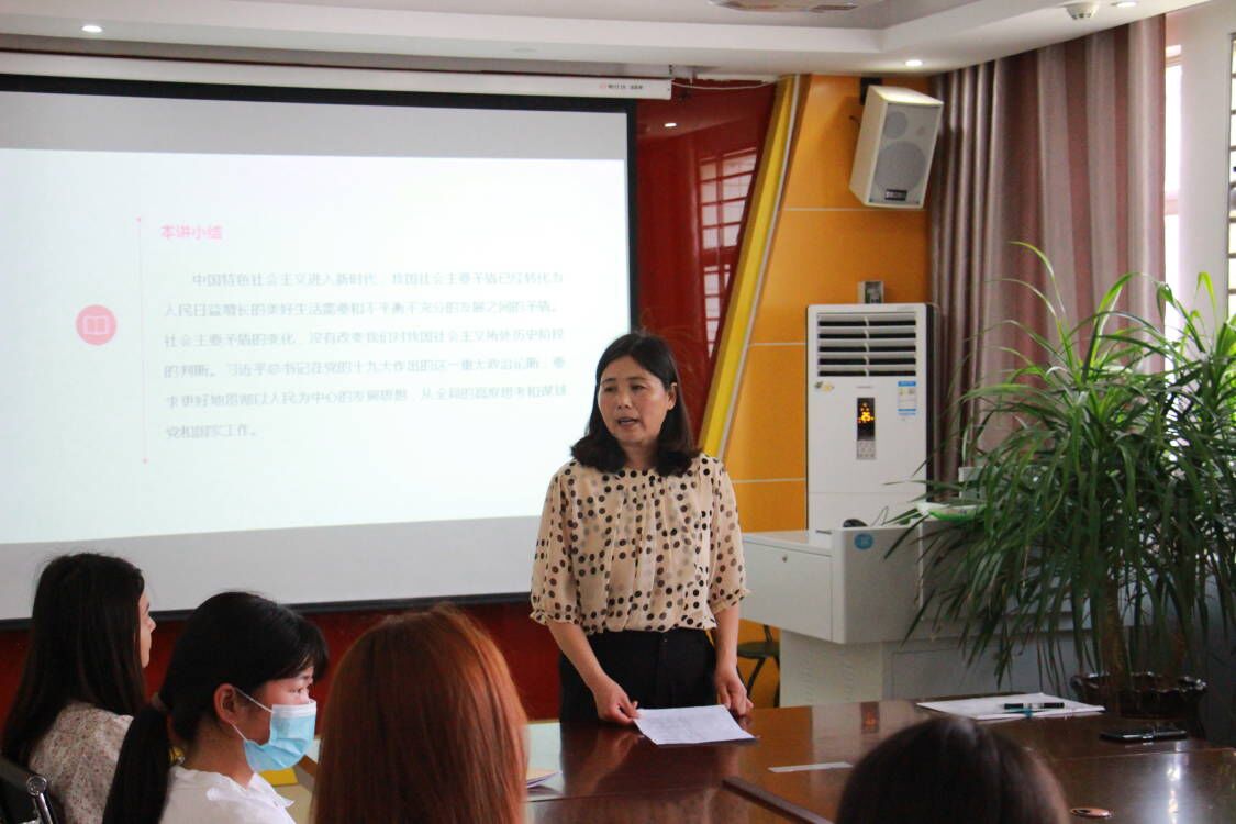 常素枝从我国社会主要矛盾的变化反映了时代和实践要求、我国社会主要矛盾变化的主要依据、我国社会主要矛盾变化的实践要求等四个方面进行讲解。并指出中国特色社会主义进入新时代,主要矛盾已经转化为人民日益增长的美好生活需要和不平衡不充分的发展之间的矛盾。