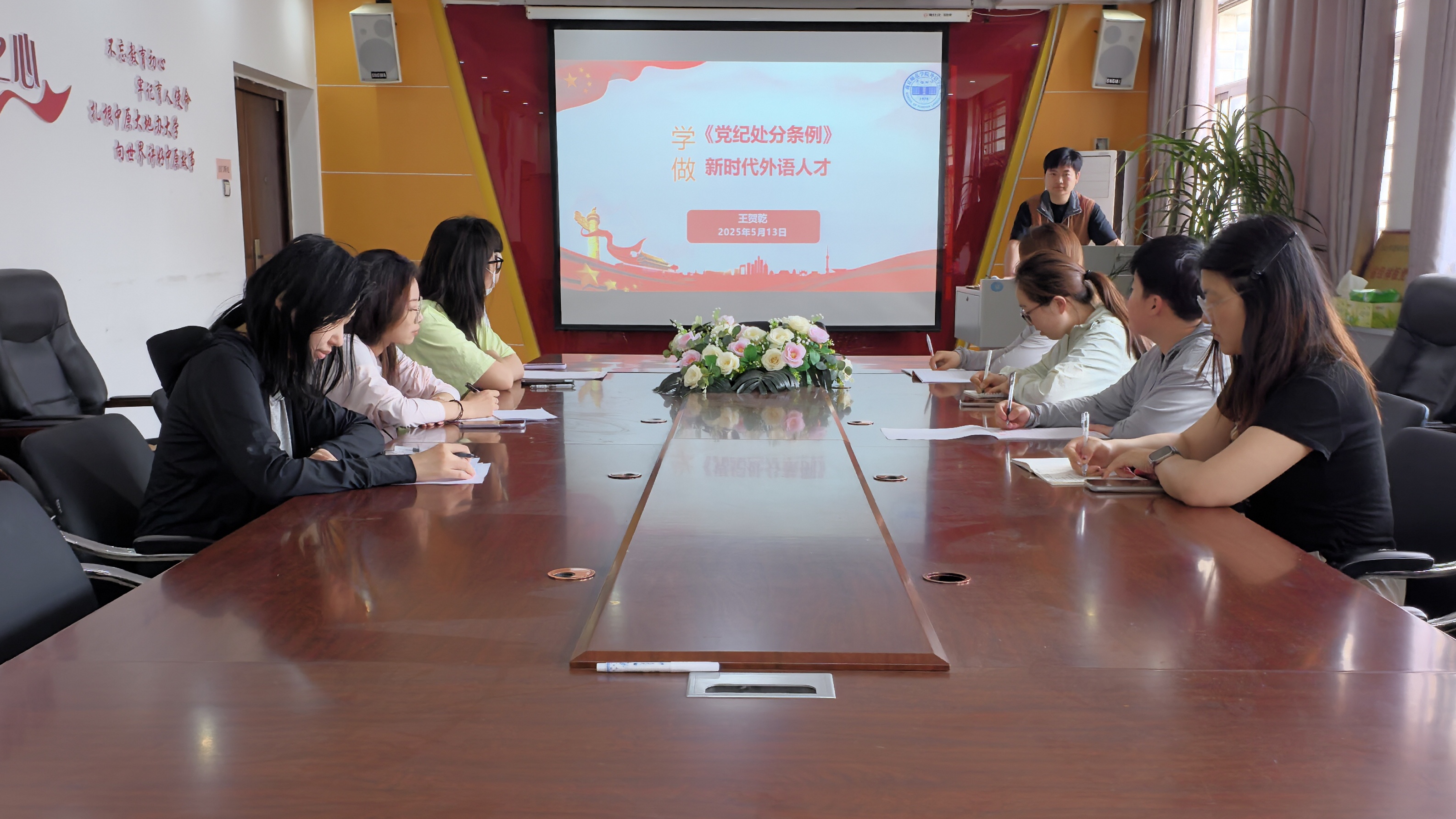为进一步提升预备党员的理论水平和党性修养,坚定理想信念,筑牢思想防线,E8官网登录入口于2025年5月13日在应天楼214会议室举行2025年上半年员工预备党员中期培训第二讲,围绕《中国共产党纪律处分条例》学习重点,紧扣党的“六大纪律”,推动条例入脑入心。本次培训由员工第二党支部书记王贺乾主讲,全体应参训预备党员参加。