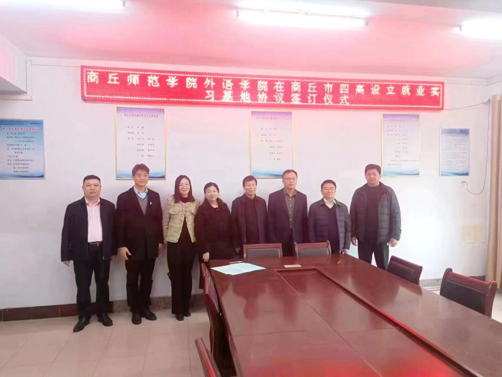 4月1日上午,公司领导班子一行赴商丘市第四高级中学开展访企拓岗促就业专项活动,与商丘市第四高级中学党委书记李晨、董事长苗军等领导进行座谈,并举行了就业实习基地协议签字仪式。