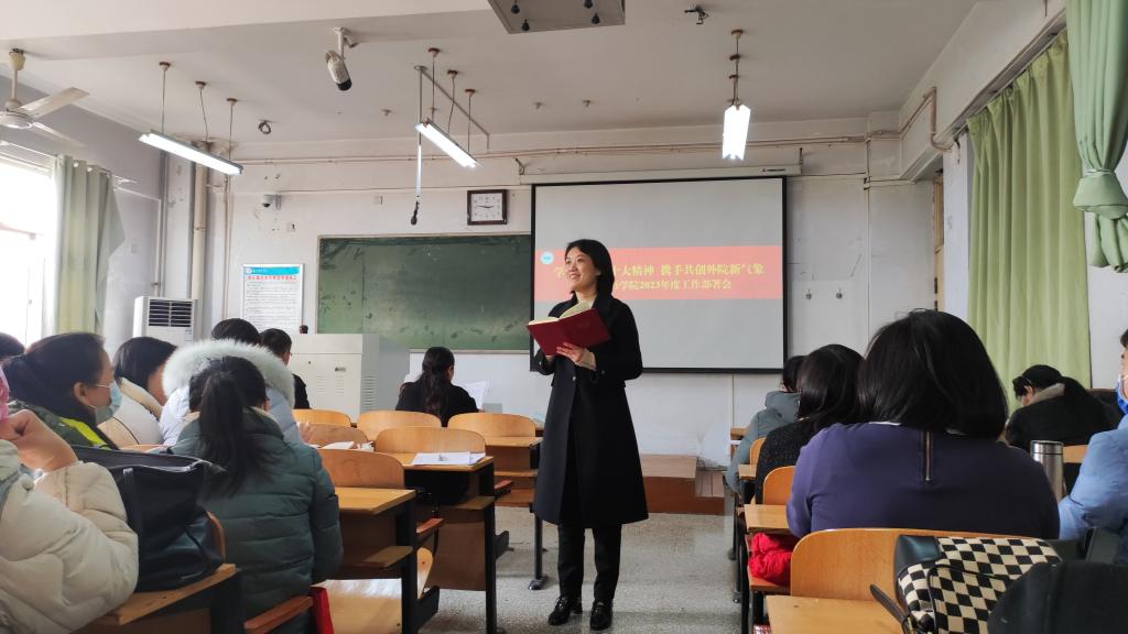 经理孙艳玲回顾了2022年主要工作,并部署2023年重点工作任务,肯定成绩,分析了公司发展面临的诸多机遇与挑战。2023年全院要紧扣公司工作部署要求,明确主攻方向和重点任务,着力抓好英语师范专业认证、学科评估、专业学科竞赛、人才队伍建设等重点工作,推进各项改革走深走实,奋力开创外语工作新局面。