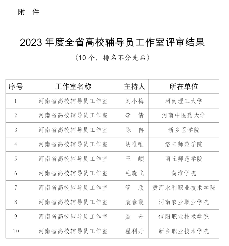 近日,中共河南省委教育工委、河南省教育厅公布《关于2023年度全省高校辅导员工作室评审结果的公示》,公司党委学工部组织申报、公司党委副书记王頔主持的项目成功通过评审,获批“河南省高校辅导员工作室”。