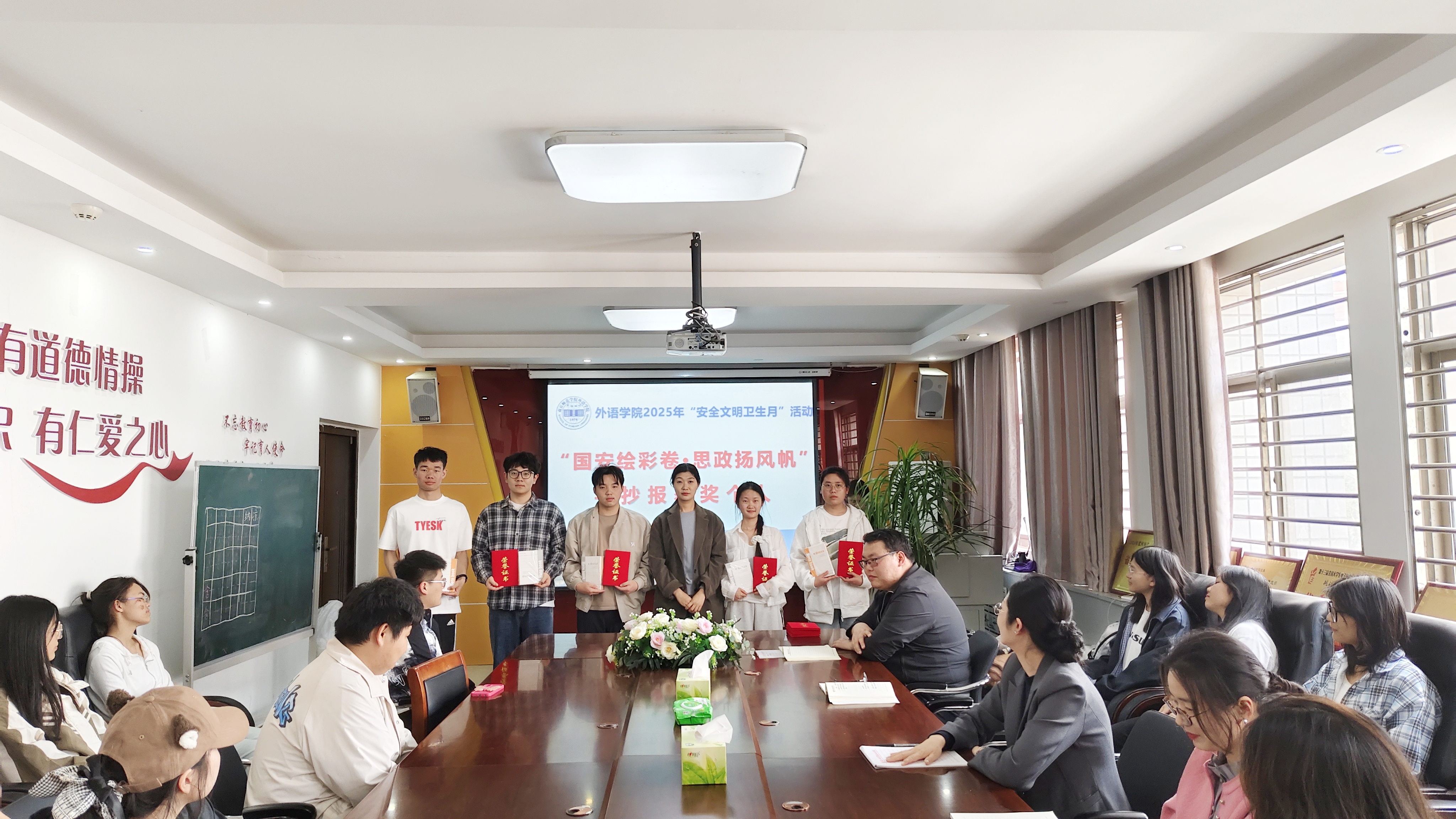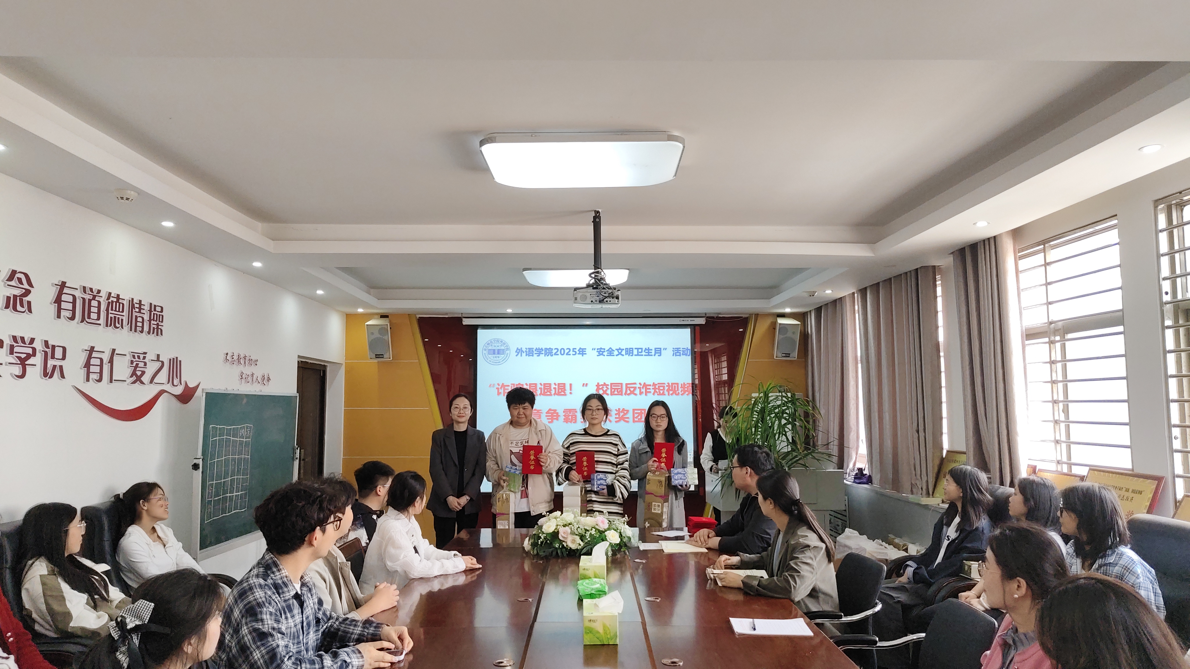 常素枝首先宣读了《E8官网登录入口关于表彰2025年“安全文明卫生月”活动获奖集体和个人的决定》,表彰了“国安绘彩卷·思政扬风帆”手抄报征集、“狂飙!安全知识猜词局”挑战赛、“诈骗退退退!”校园反诈短视频创意争霸赛、“‘寓’见美好,‘宿’写华章”十佳最美宿舍评选等活动中获奖的集体和个人。随后,与会领导老师依次为受到表彰的同学颁发了荣誉证书、流动红旗和奖品。最后,王頔对同学们在系列活动中的积极参与和辛勤付出表示肯定,对受到表彰的集体和个人表示祝贺,并再次强调了开展“安全文明卫生月”活动的重要意义,希望受到表彰的集体和个人继续保持良好的行为习惯和精神风貌,在今后的学习和生活中发挥模范带头作用。