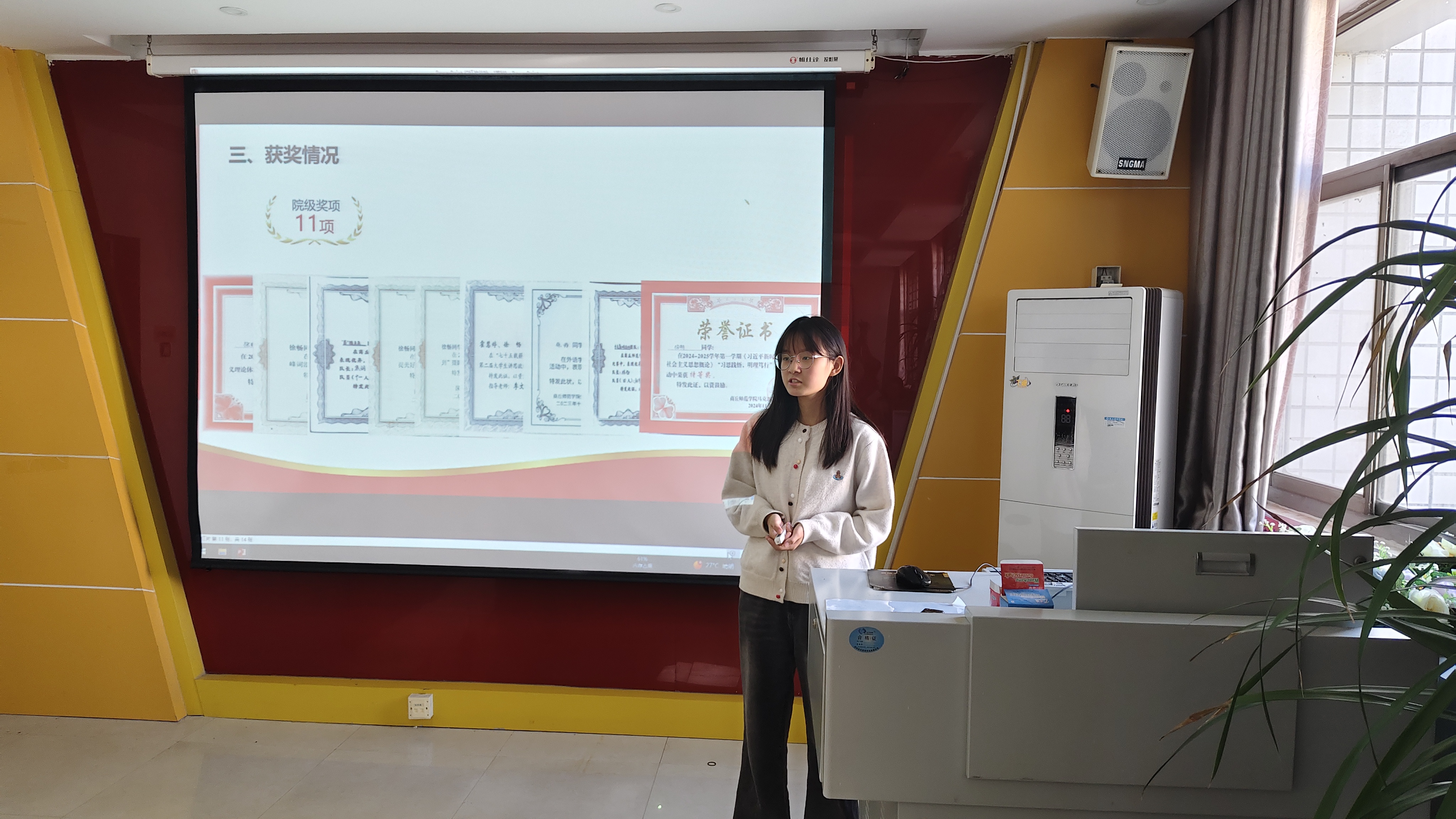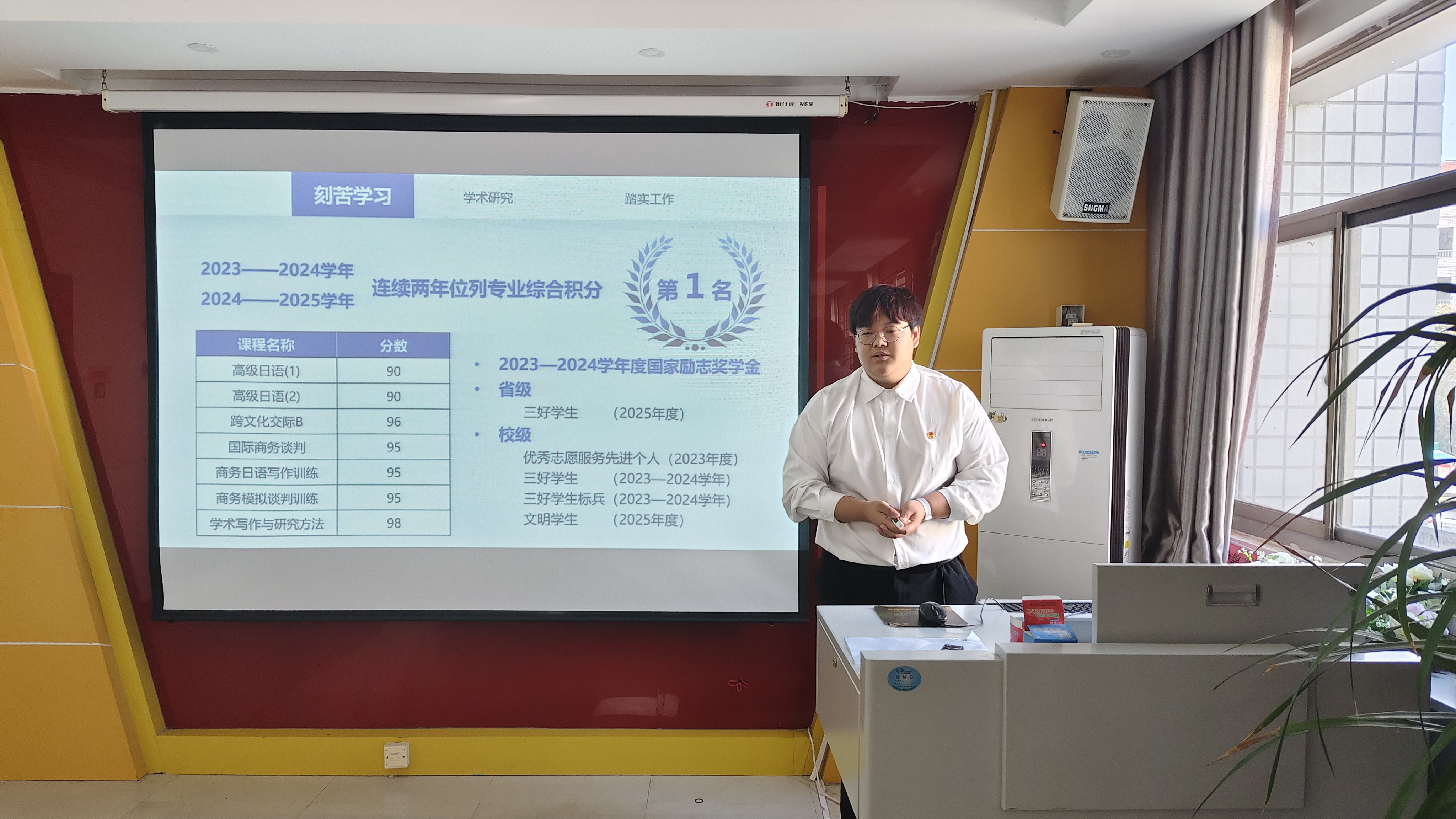 经前期初选和个人申报,共有七位同学进入评审答辩,他们分别从思想、学业、竞赛、实践、服务等方面进行了汇报,展现了过硬素质与良好风貌,并依次对评审组的提问进行了现场答辩。经过综合评议,最终确定李炳璋、孙雨等五位同学为2024-2025学年国家奖学金推荐人选。