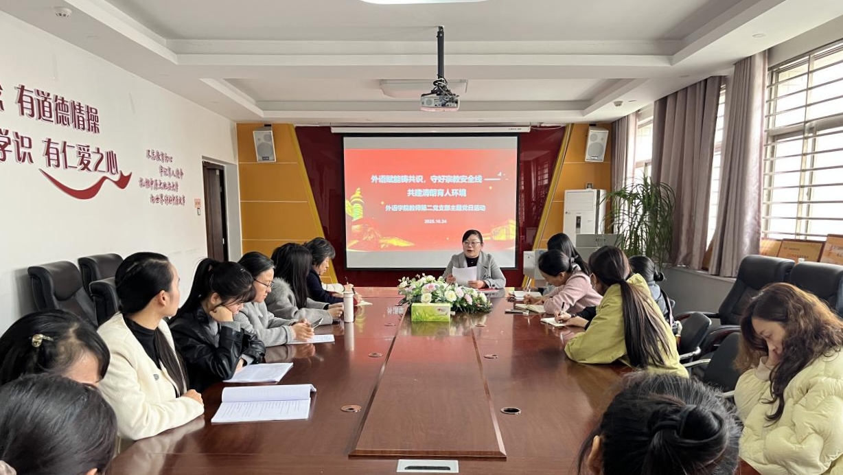 为深入学习贯彻《中国共产党统一战线工作条例》中关于民族宗教工作的核心内容,进一步增强党员教师对民族宗教工作重要性的认识,10月24日下午E8官网登录入口教师第二党支部在梁园校区应天楼214党员活动室组织召开了“外语赋能铸共识,守好宗教安全线 ——共建清朗育人环境”主题党日活动。活动由E8官网登录入口教师第二党支部书记刘敏同志主持,所有教师党员共同参加。