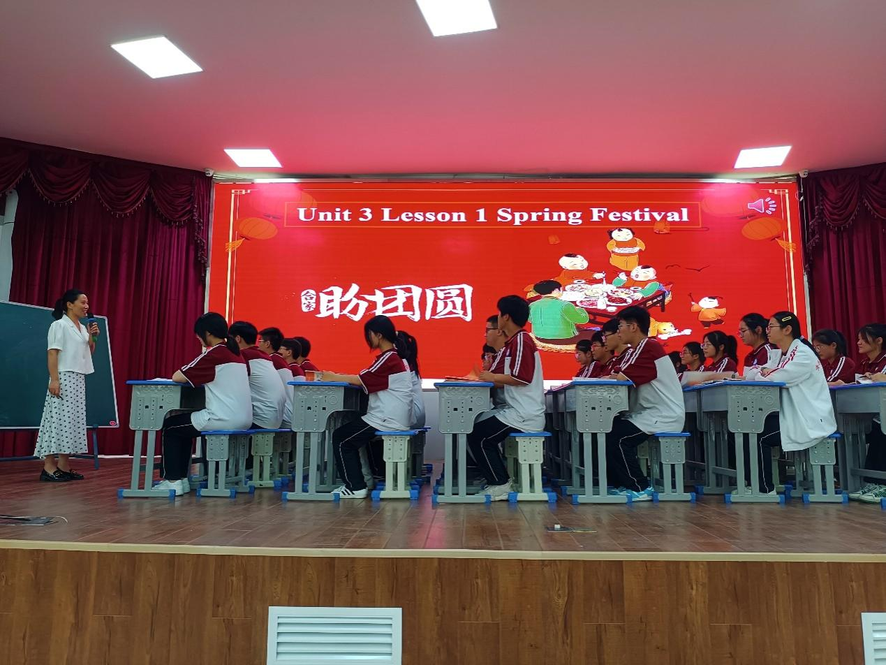 第一节观摩课由黄婷婷老师为同学们进行展示。这节课的教学内容是北师大版高中英语教材的Unit 3 Lesson 1 Spring Festival,黄婷婷老师的教学展示主题清晰明确,课程设计科学完整,教学过程中有效融入中国文化和中国元素,在培养员工语言能力的同时,注重培养员工的文化意识、思维品质和学习能力。课堂活动生动有趣,员工参与度高,课堂气氛活跃。